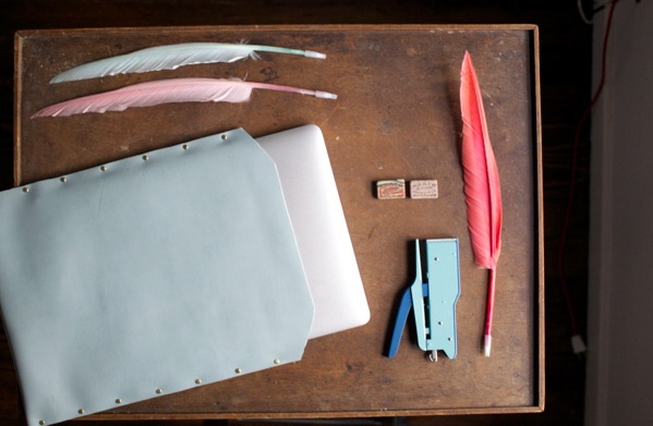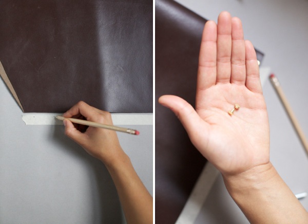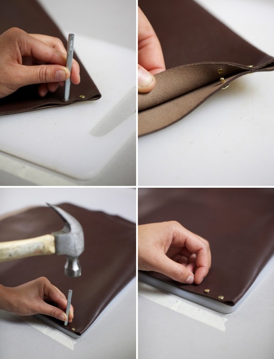Затем берем мололток и пробойник и пробиваем отверстия под шов вдоль чехла.