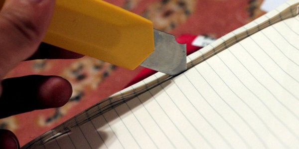Шаг 15. Возьмите нож для скоса края кожаных изделий и обработайте им кромки чехла.