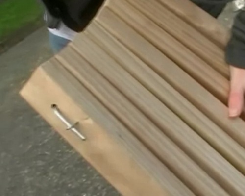 Теперь делаете спинку. В качестве материала лучше всего использовать обрезную доску. На задних опорах изнутри проделываются пазы, которые равны толщине и высоте спинки. В эти отверстия заводится спинка. Сиденье фиксируется с помощью шурупов. Для придания стулу нужной степени жесткости и обеспечения крепления легкостью нужно присоединить небольшие раскосы.