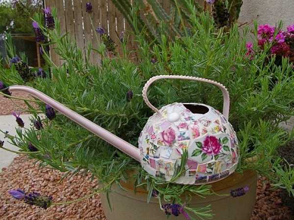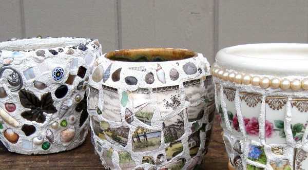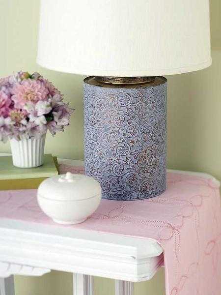 - После покраски наносят декоративные элементы: приклеивают вырезки из салфеток, рисуют орнаменты или обводят краской трафареты;