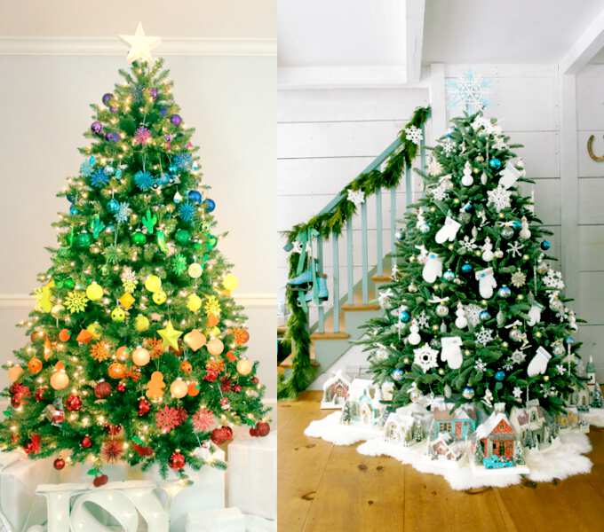 - Живой или искусственной елкой. В небольшой квартире символ праздника замените настенным панно. Ель рекомендуется украшать крупными шарами, бантами, светящимися гирляндами. Избегайте обилия дождика, иначе древо будет выглядеть старомодно.