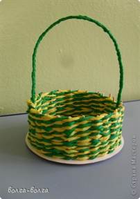На фото поделки корзинки видно, что есть ряд техник плетения из трубочек. Ниже приведён самый простой вариант: