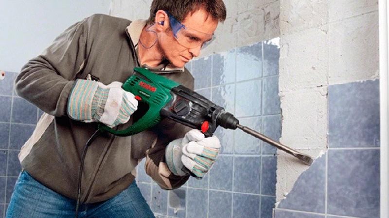 Демонтаж плитки перфоратором — наиболее быстрый вариант