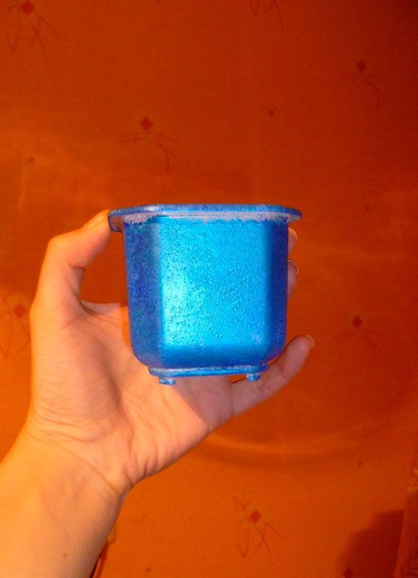 Я обрезала стаканчик из-под йогурта.