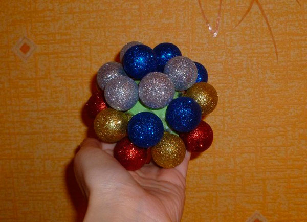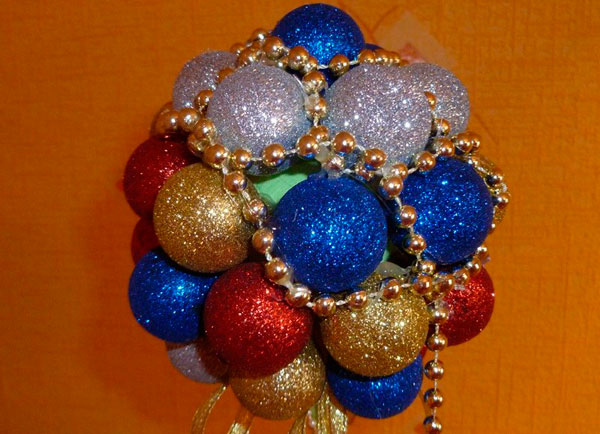 Простой топиарий из елочных украшений