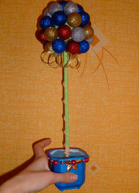 На сегодняшний день топиарий — деревце, выполненное из декоративных, природных материалов и других. В последнее время их делают даже из конфет, сыра и колбасы. Они не подойдут для украшения, но станут отличным подарком.