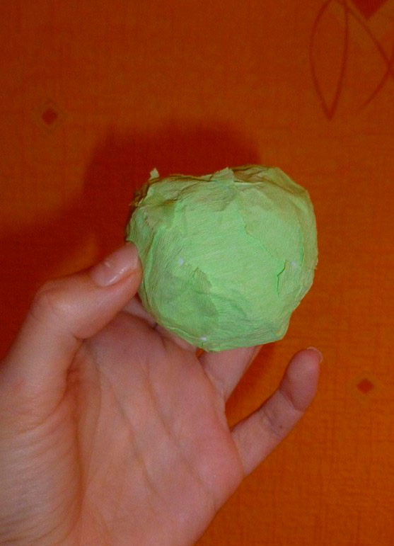 Использован пенопластовый шар диаметром 12 см, также можно сделать каркас самостоятельно: 8 способов сделать шар для топиария.