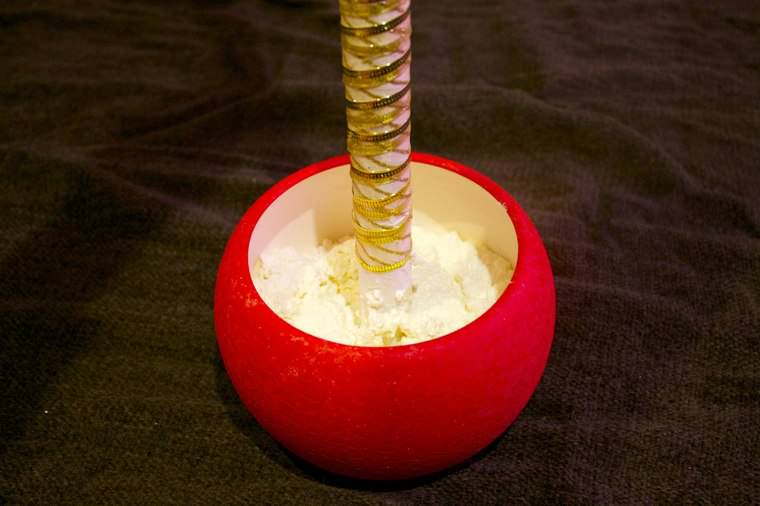 Для кроны вы можете подобрать материалы, изначально имеющие необходимую форму. К примеру, это может крупный елочный шар (лучше отдать предпочтение украшению из пластика, а не из стекла). Помимо уже описанных вариантов, шар можно слепить из теста или пластилина, вырезать из дерева или даже сшить, набив поролоном.