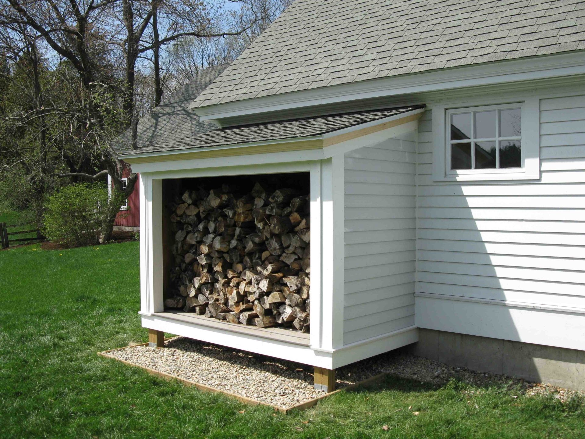 К дому или другой постройке можно приделать . Это будет придавать дому изюминку и за дровами ходить далеко не придется.