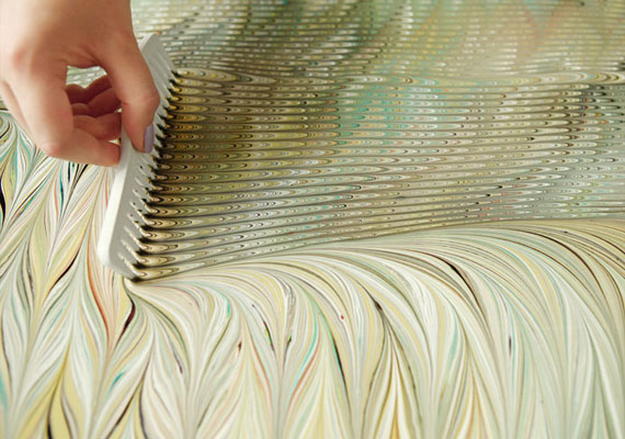 6. Для образования узоров можно использовать гребни. Если использовать гребень с редким расположение зубцов, разводы получаться более выразительными.