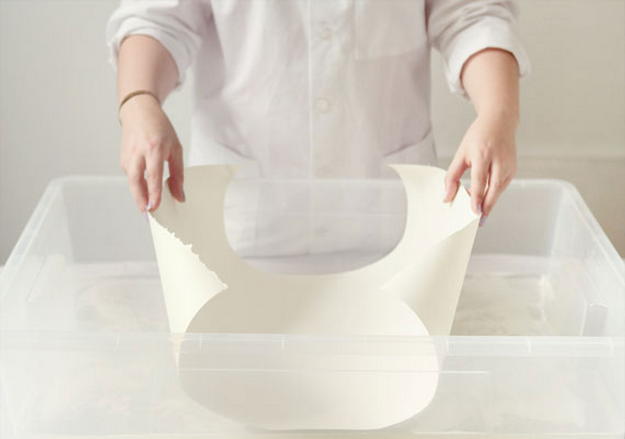 На листе помимо узора остается грязноватая клейкая основа. Она может сильно испортить изображение, оставить серые пятна. Помещаем бумагу в воду, вручную осторожно очищаем от клейкой массы. Ни в коем случае не промывать под струей воды! Может смыться рисунок.