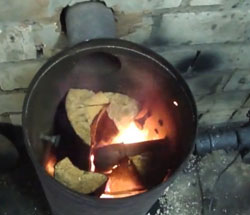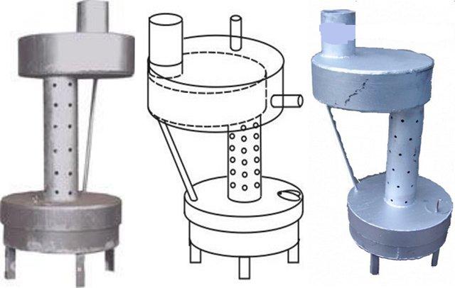 Изготавливают такую жидкотопливную печь следующим образом. Берут листовое железо и варят из него нижнюю часть, которая является топливным баком. Его соединяют трубой, имеющей множество дыр диаметром 10 мм, с верхней камерой, где происходит догорание отработанных газов. Она в свою очередь соединяется с дымоходом, который должен быть строго вертикальным. В топливном баке имеется отверстие, в которое заливают отработку и поджигают ее. Это отверстие закрывают регулируемой заслонкой. С помощью нее контролируют количество поступающего воздуха, а, следовательно, и интенсивность горения. Если есть возможность изготовить такую печь из бочки или газового баллона, то это еще удобней.