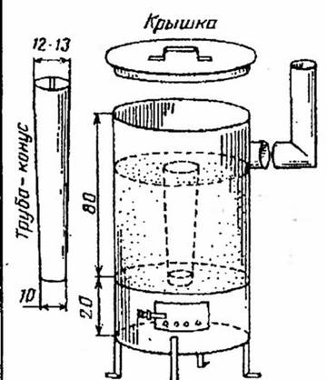 - К отверстию в крышке верхней части приварите трубу дымохода.