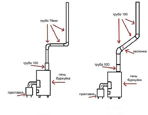 - Дымоход, представляет собой обычную трубу или изогнутую для повышения КПД;