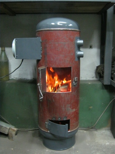 Такая самодельная буржуйка для гаража, изготовленная своими руками, несколько удобнее в использовании. Но при этом необходимо больше приложенных усилий для ее изготовления.