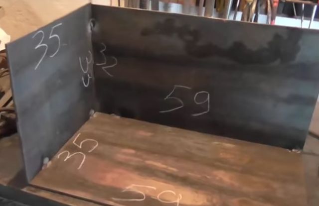 В месте, соответствующем дну печи, следует вырезать отверстия под решетку, после чего ее необходимо приварить. С других трех сторон необходимо установить стальные листы, используя сварку. Они послужат стенками для будущей печи. В итоге должен получиться короб с дверцей, не имеющей верхней части. Коробку необходимо сварить с дном, причем это необходимо сделать так, чтобы открытая сторона прилегала к дверце. Далее необходимо установить заслонку, при помощи которой можно будет изменять режим подачи воздуха в топку печи.
