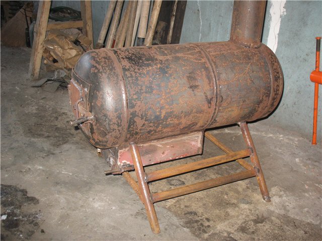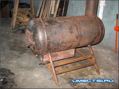Примечание. Из бывшего газового резервуара, установленного в вертикальное положение, можно сварить печь-капельницу на масляной отработке и солярке. Как это правильно сделать, описывается в .
