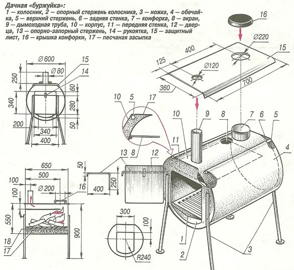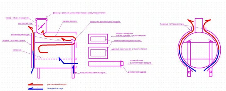 Схема простейшей печки буржуйки своими руками