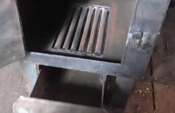 - Изготовьте колосниковую решетку и поставьте ее на опоры из уголков, приваренных изнутри к боковым стенкам топливника.