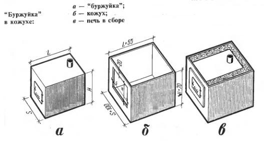 - буржуйка с кожухом, предназначенным для повышения отдачи тепла.
