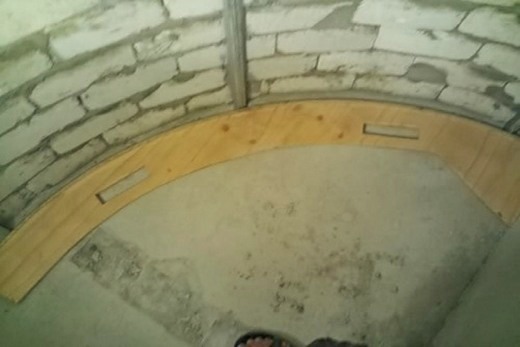 - Для придания формы дну используется кирпич, нужно точно следовать размерам экрана (карниза), необходимого для закрепления шторки;