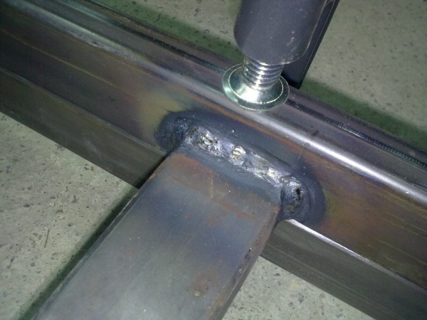 - Усиливаем уголки каркаса с помощью приваривания маленьких поперечных брусов.