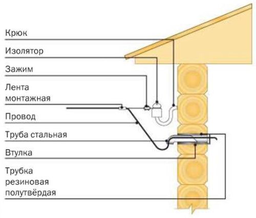 Важно! Электрокабелю для ввода электрики в дом уделяют особое внимание, учитывая максимальную мощность электрических приборов.Слабое сечение вводного кабеля может привести к загоранию проводки электрики деревянного дома.