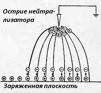 За счет повышения показателей поверхностной плотности происходит съем заряда в приборе. В единичной точке делаются энергетические запасы в банке Лейдена, другое место служит для изменения знака. Индукционные нейтрализаторы практически не имеют отличий. Они оба выполняют общую функцию нейтрализации энергии. Общая схема: