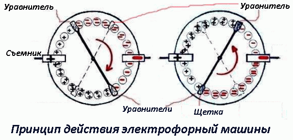 Каков принцип работы электрофорной машины