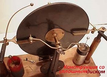 Таким образом, гребенка способна скользить по диску. В ранних конструкциях изготавливался единым, без секторов, однородным и из плотного материала (см. рис.). Работал без алюминиевых конденсаторов. Физики, хорошо разобравшиеся с машиной, смогли ее усовершенствовать.