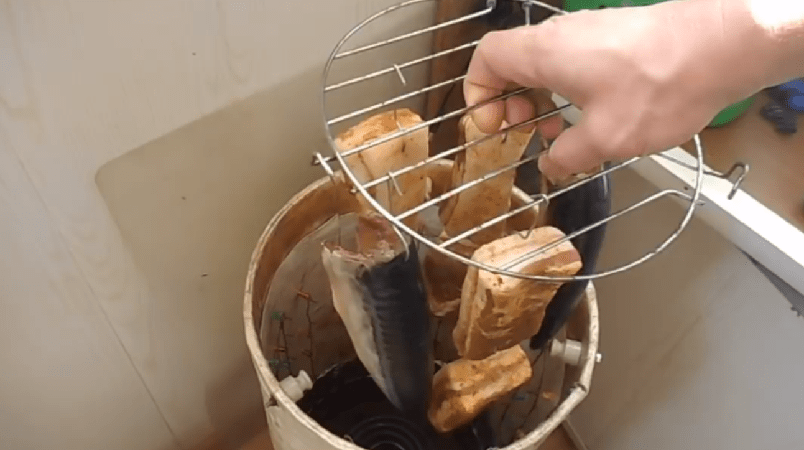 Когда сборка электрической коптильни завершена, приступать к копчению сразу не рекомендуется. Сначала необходимо бочку слегка раскочегарить. Первый прогрев должен длиться от 10 и до 20 минут. После него уже можно закладывать мясо (рыбу).