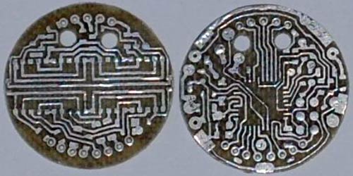 Чтобы изготовить плату, выполнялось нанесение схемы с помощью утюга. То есть печатная схема распечатывалась на струйном принтере с использованием глянцевой бумаги, ее можно взять с современных глянцевых журналов. После вырезался текстолит нужных размеров. У меня размер получился 36*26 мм. Такой маленький размер из-за того, что все детали выбраны в SMD корпусе.