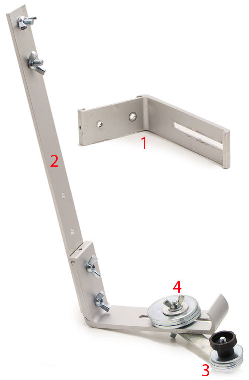Если вы используете грузики, положение центра тяжести которых нельзя изменить (как на фото), то отрегулировать горизонт можно путём поворота вертикальной планки на небольшой угол в узле её крепления. Перед регулировкой, один из винтов отпускается, а второй затягивается не до конца. После чего, планка устанавливается в нужно положение, и оба винта затягиваются.