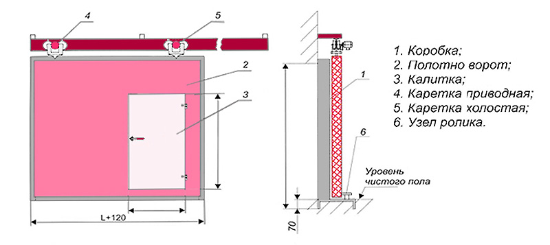 Подробная схема монтажа роликовых ворот с калиткой