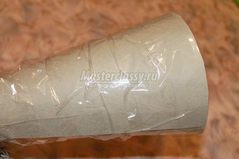 Второй конец мишуры в самом низу каркаса закрепите небольшим кусочком изоленты.