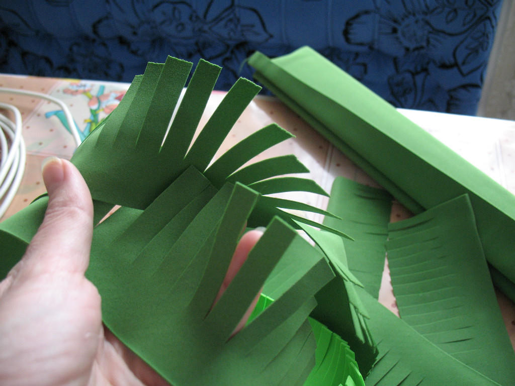 - Найдите отложенную на время полоску фоамирана и нарежьте на ней бахрому.