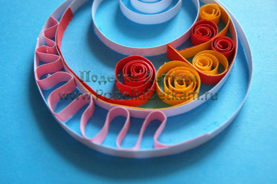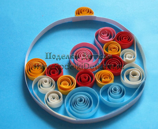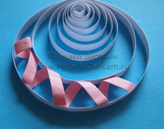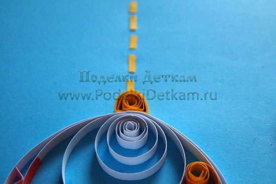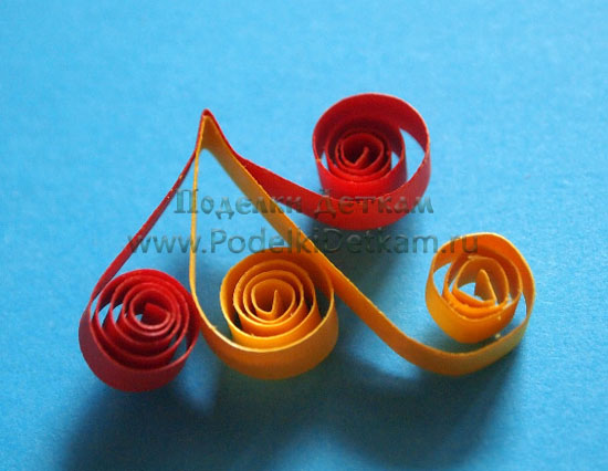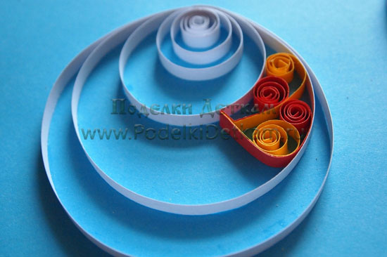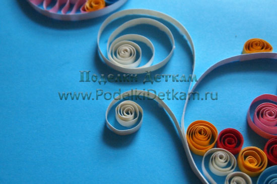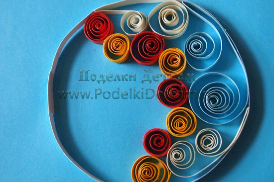 Теперь сделайте спирали для третьего ряда, вставив их в отверстие под номером 14. Приклейте.