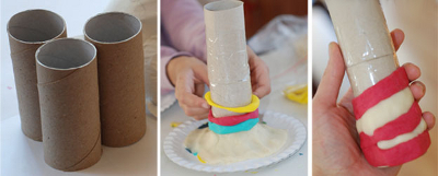 Коричневые полосы нужно накрутить в свободные завитки, например на обычный маркер. Смажьте их концы клеем и приклейте. Коричневые «бочонки» готовы!
