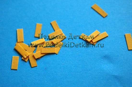 - Из цветной бумаги нарезаем небольшие тонкие полоски.