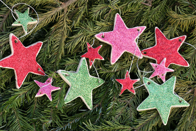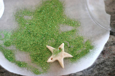 Используя зелёный глиттер, покройте блеском пышные бутоны ёлки. Лесная красавица засверкает, словно на ней зажглись тысячи огней.