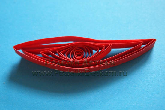 - Взять пять полосок красной бумаги шириной 7 мм;