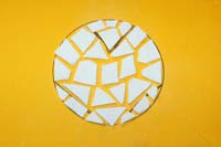 По своему усмотрению рассыплем готовые детали по зеленому конусу. Клей ПВА поможет прикрепить элементы квиллинга.