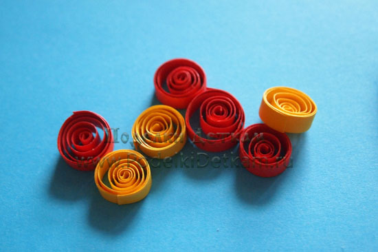 Второй ряд делаем по такому же принципу, только вставляем в кружок под номером 15. Скрутите таких завитков штук 10. Приклейте первые два ряда, как показано на фото.