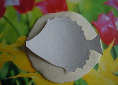 Применяя метод торцевания, сделайте снежный сугроб. Для ствола ёлочки используйте ручку от бумажного пакета.
