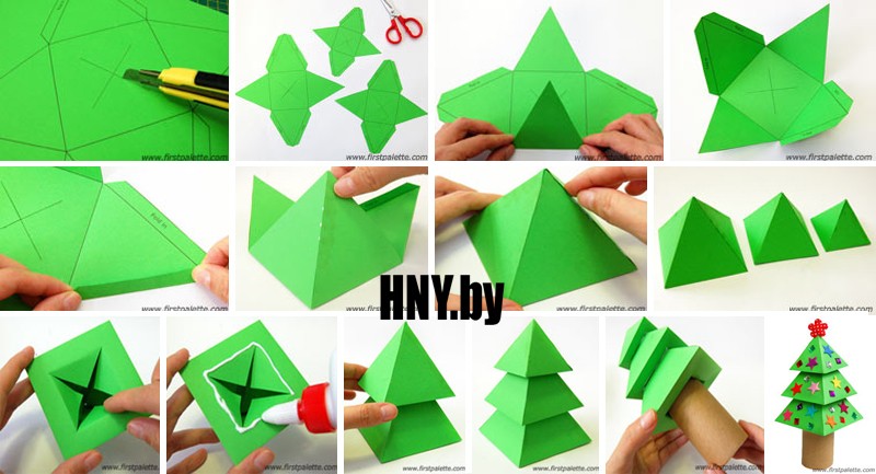 Елочка оригами из бумаги — поэтапно своими руками: