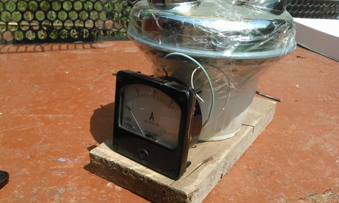 Земля — ресурс отрицательных электронов, световая волна, в том числе от солнца — положительных. Один из электродов заземляется, другой — выводится на экранированный экран.