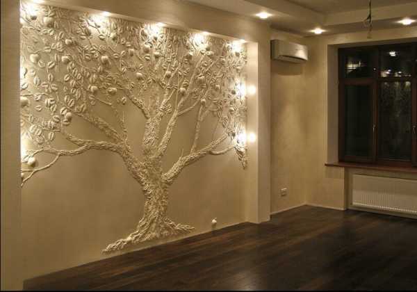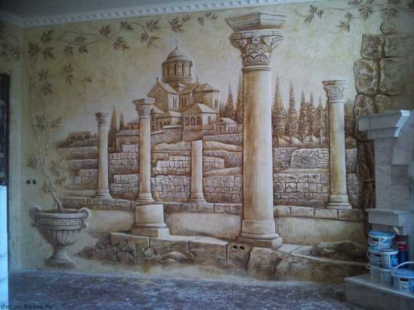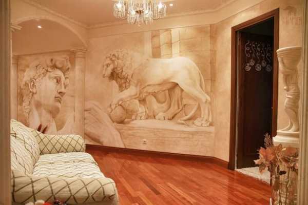 - Удивительную выразительность и глубину стене придают 3D рисунки, для которых на первом этапе выполняют из гипсовой массы рельефные полу объемные изображения. Затем их красиво расписывают. (рис.2)