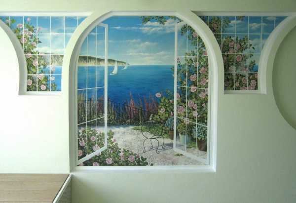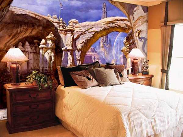 К примеру, рисунок окна — расширяет помещение. Этой же цели служит появление на стене дороги, уходящей вдаль, полей и лугов или безграничного космического пространства. Морская тематика будет великолепна в ванной комнате. Для домашнего интерьера не подходят мрачные сюжеты.