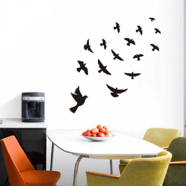 Быстро обновить интерьер удастся, если декорировать стены готовыми виниловыми наклейками. Среди обширного ассортимента можно подобрать изображения с различными цветовыми сочетаниями, формой и размерами.