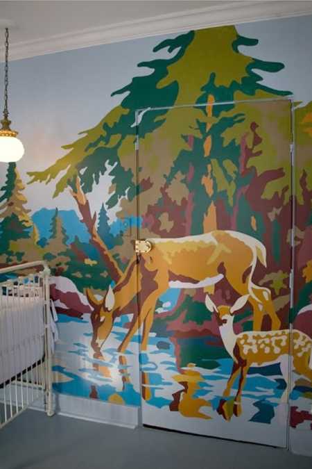 - Ценителям настенной росписи даже без владения художественными методиками удастся внести в интерьер особое настроение, если воспользоваться трафаретами. Их не нужно изготавливать самостоятельно, так как в специализированных магазинах и салонах представлен широкий ассортимент, позволяющий подобрать запланированный рисунок. (рис.4)